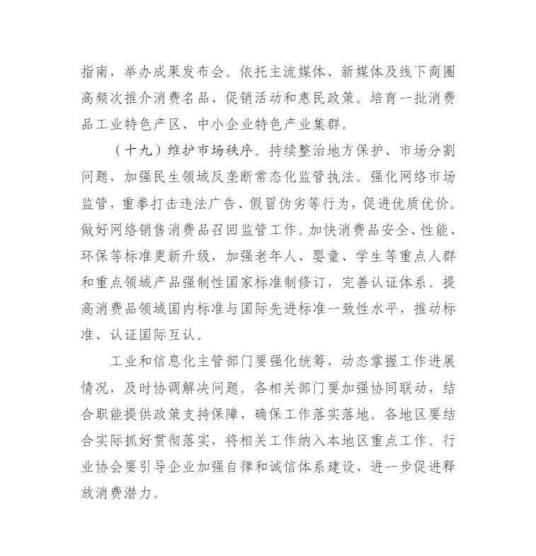 为贯彻落实党中央、国务院关于大力提振消费的决策部署,工业和信息化部等六部门制定了《关于增强消费品供需适配性进一步促进消费的实施方案》,经国务院同意,现予印发,请认真组织实施。