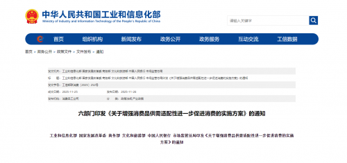六部门印发《关于增强消费品供需适配性进一步促进消费的实施方案》的通知工业和信息化部国家发展改革委商务部文化和旅游部中国人民银行市场监管总局印发《关于增强消费品供需适配性进一步促进消费的实施方案》的通知工信部联消费〔2025〕252